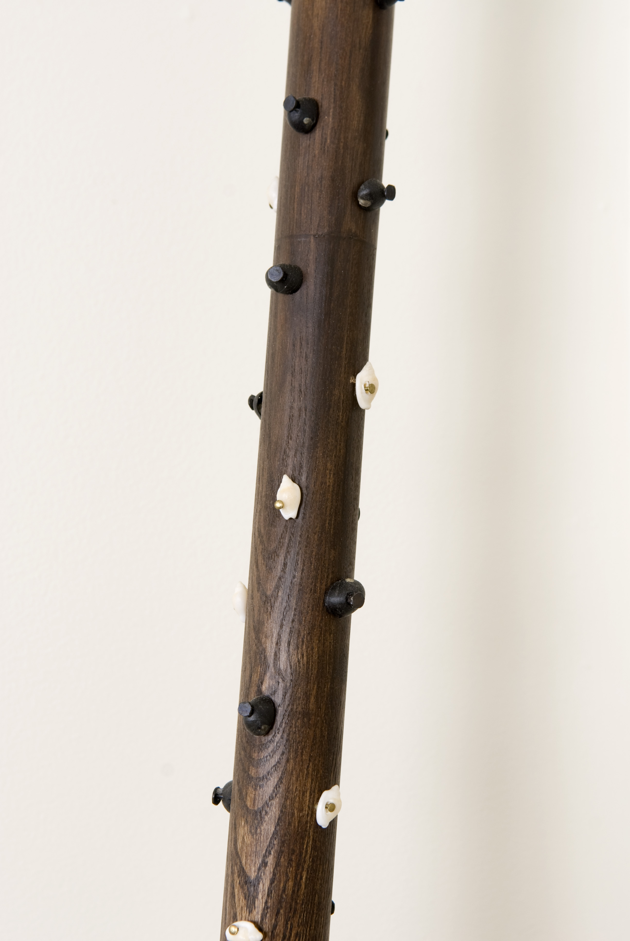 found trunk, Tasmanian oak, blanket, pins, tea tree
